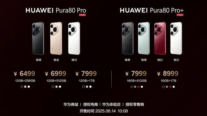 价格方面和上代保持一致,华为Pura80 Pro有三个版本可供选择:12GB+256GB版6499元,12GB+512GB版6999元,16GB+1TB版7999元。华为Pura80 Pro+有两个版本可供选择,16GB+512GB版7999元,16GB+1TB版8999元。至于直屏党心心念的华为Pura80,将在2025年7月份登场,至于什么原因,目前没看到相对靠谱的爆料。突然想到关于苹果的发布会的爆料,秋季发布Pro系列、Air和折叠屏,春季发布相对数字系列和更低端的数字+e机型。