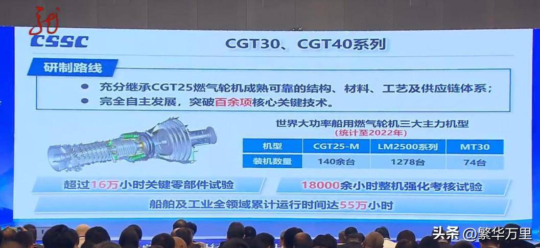在2015年左右,055型驱逐舰刚刚发展的阶段,采用4台CGT-25M燃气轮机,没有任何问题,也是唯一的选择。不过,到了2025年,情况已经发生了巨大的变化。2024年,我国新一代的CGT-30M、CGT-40M燃气轮机,已经公开亮相,分别对应了30兆瓦、40兆瓦级的大功率燃气轮机。